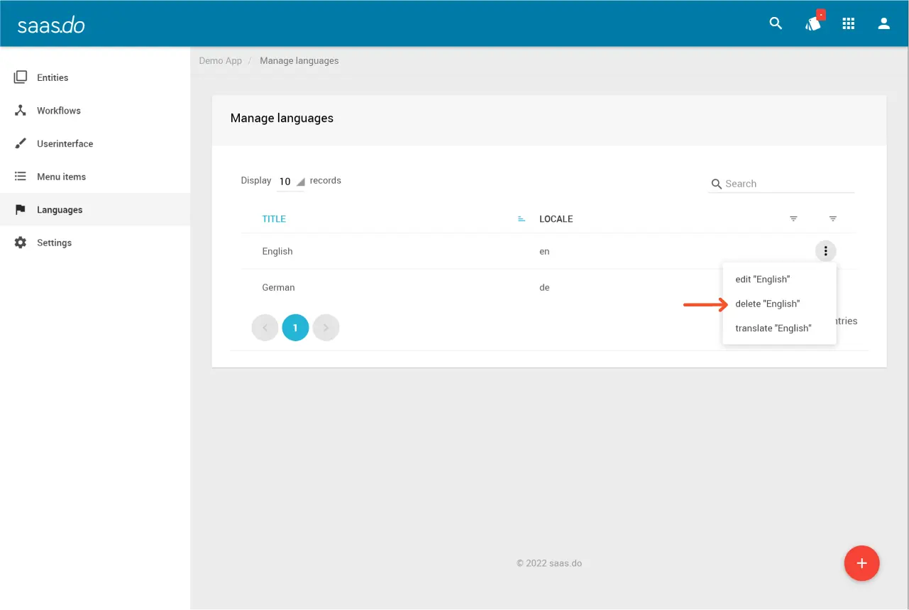 - Klicke in der Zeile der Sprache, die du löschen möchtest, auf mehr → delete.