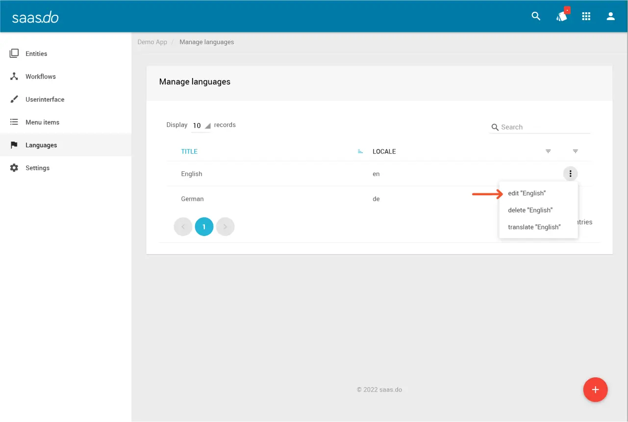 - Klicke in der Zeile der Sprache, deren Namen du ändern möchtest, auf mehr → edit.