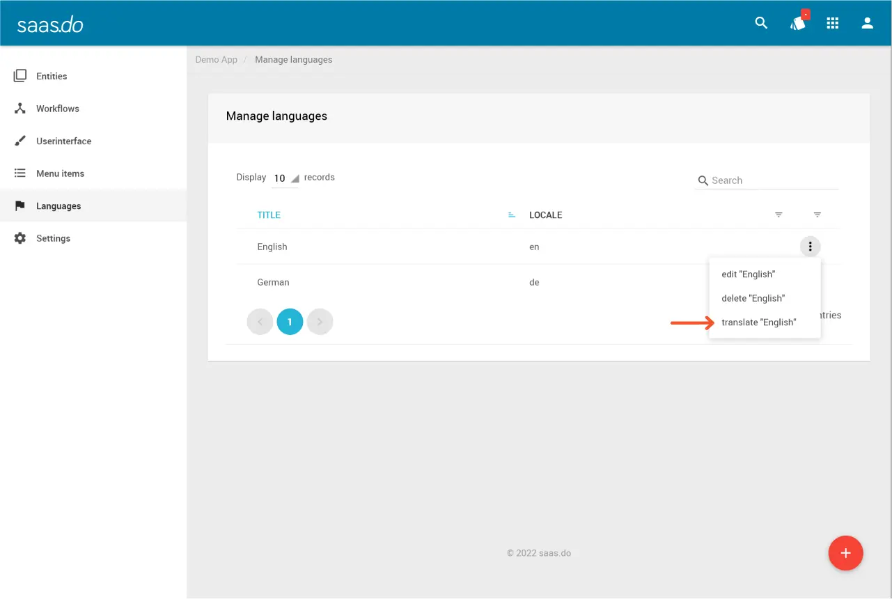 In dem Bereich Manage languages kannst du weitere Sprachen für deine App verwalten und Übersetzungen eintragen. Dadurch kann dem Benutzer die Benutzeroberfläche in seiner Landessprache angezeigt werden. An dieser Stelle können auch Texte übersetzt werden, die in Workflows verwendet werden.