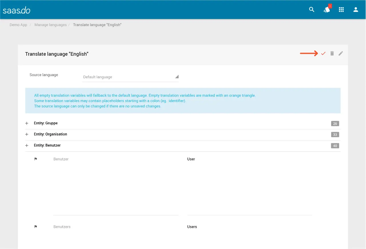 ✓ Du wirst automatisch zum Übersetzungseditor weitergeleitet.