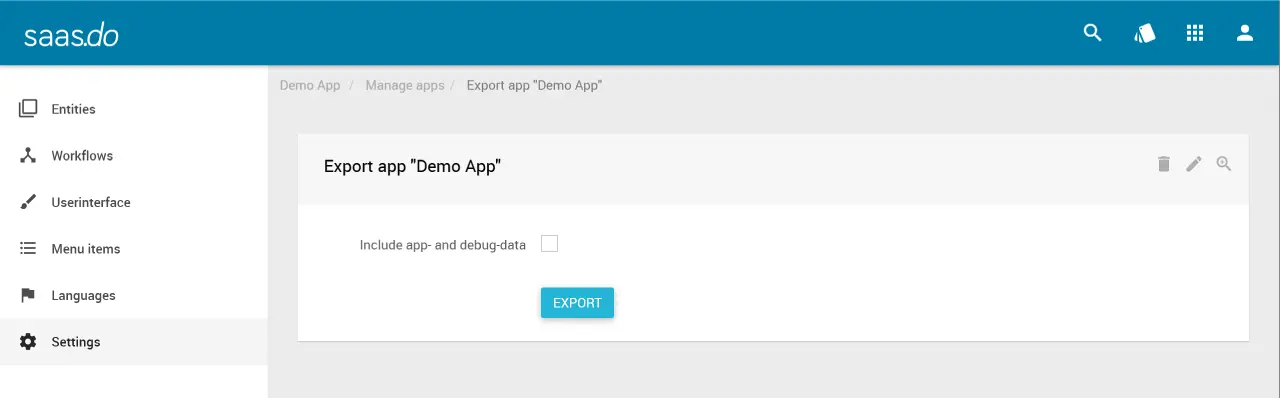 In saas.do kannst du Apps exportieren und importieren. Auf diese Weise kannst du eine bereits erstellte App mit anderen Benutzern teilen.