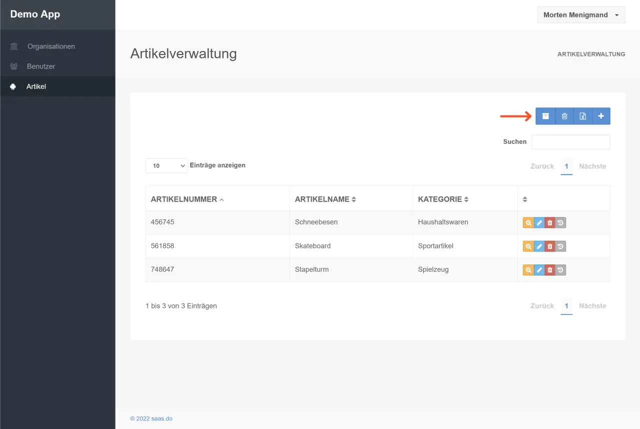 Das Archiv enthält die Datensätze, die als archiviert markiert wurden (siehe Archive Item). Diese Datensätze werden nicht mehr in der Tabellenübersicht angezeigt. Standardmäßig ist dieses Feature deaktiviert. Siehe Features, um es zu aktivieren.