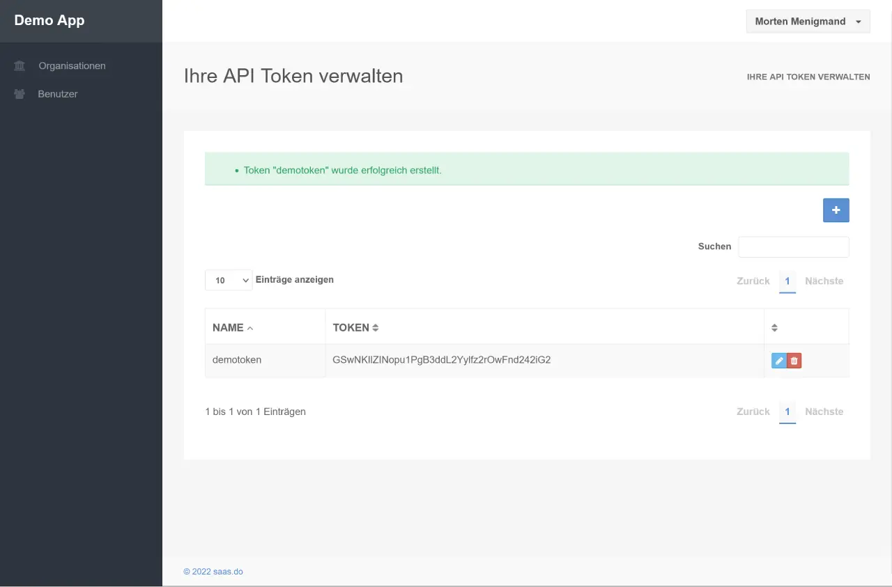 Erstellte Token werden zudem in der Token-Verwaltungsansicht gelistet und lassen sich dort ebenfalls bearbeiten. Siehe auch API-Token erstellen.