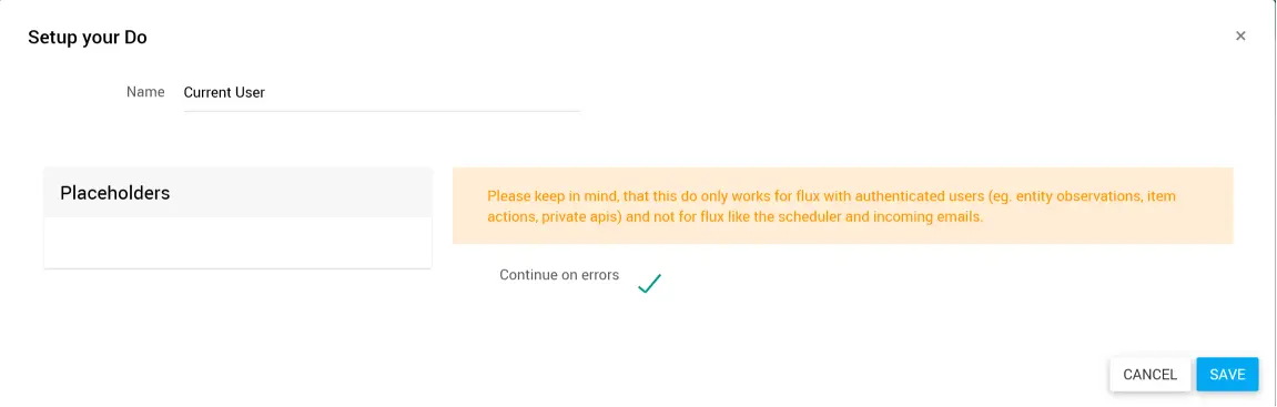 - Continue on errors: Wenn aktiviert, läuft der Workflow auch dann weiter, wenn der aktuelle Benutzer nicht gefunden wurde.