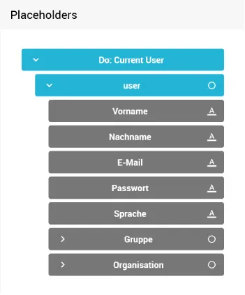 Im weiteren Verlauf des Workflows stehen dir die Daten des aktuellen Benutzers als Platzhalter zur Verfügung.