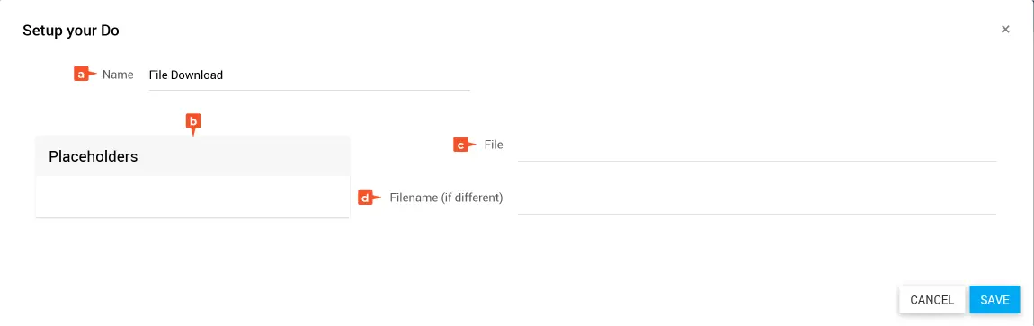 - File: Definition der herunterzuladenden Datei. Die Datei als Input musst du zuvor im Workflow bereitstellen.