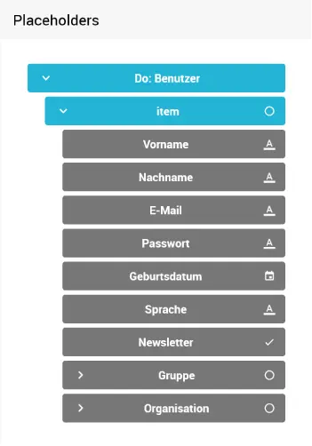 - Placeholders: Liste der verfügbaren Platzhalter