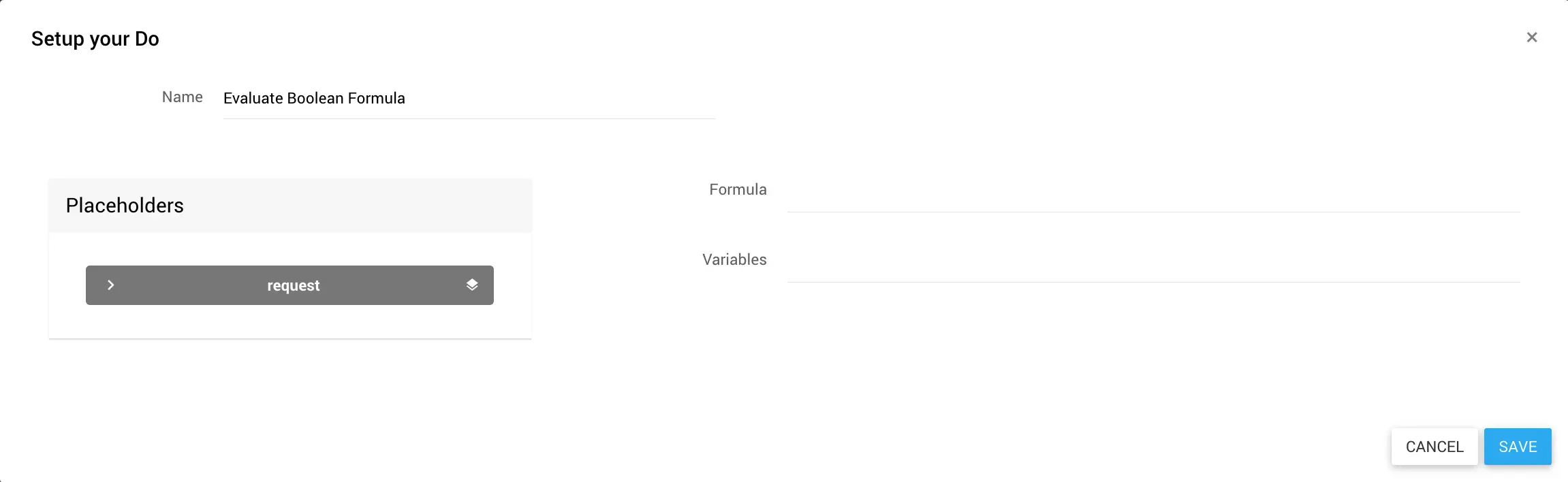 Gib im Feld Boolean Formel und Variablen ein. Hierfür kannst du auch Platzhalter, Accessoren und Operatoren verwenden. Beachte bei einer händischen Eingabe die Konventionen unter Datentypen.