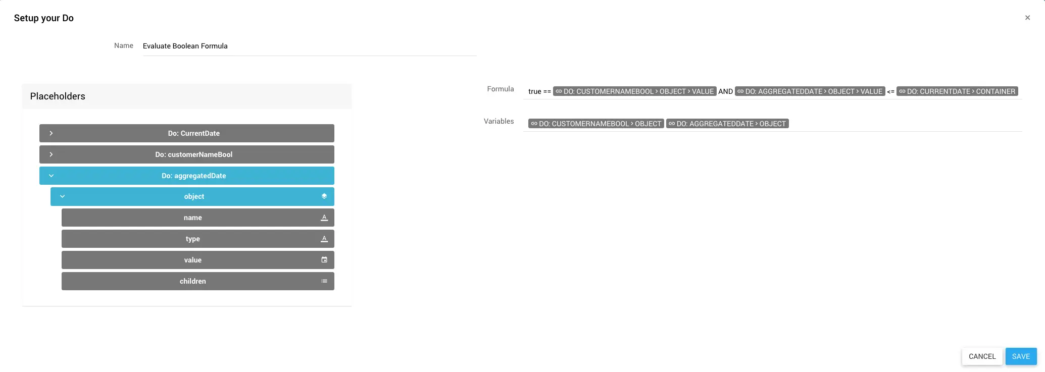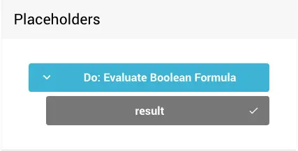 Im weiteren Verlauf des Workflows steht dir das Ergebnis des Evaluate Boolean Formula-Containers als Platzhalter zur Verfügung.