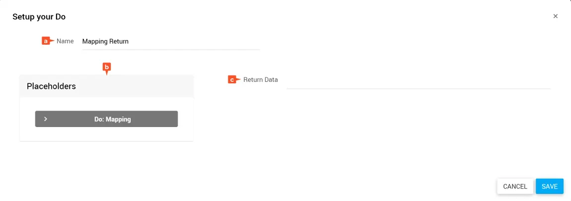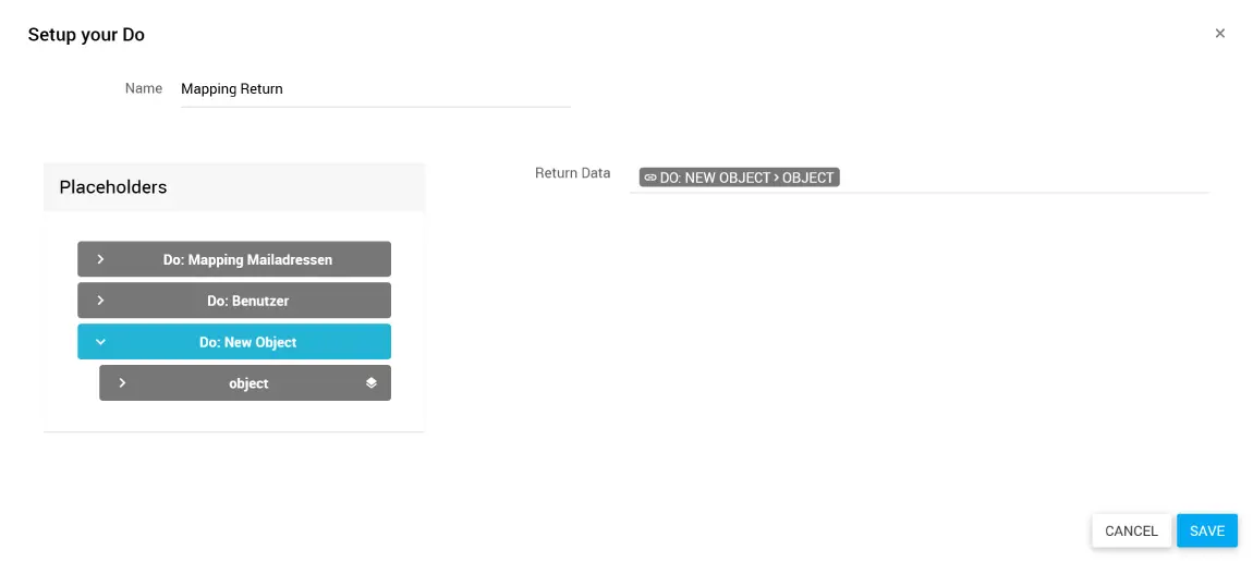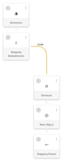 Mit dem Baustein Mapping Return gibst du die transformierte Liste einer Collection an den Workflow zurück. Diesen Baustein kannst du nur innerhalb eines Mapping-Pfades nutzen.