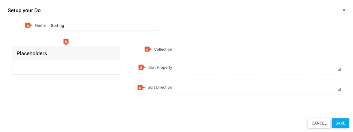 - Collection: Definition der Collection, die sortiert werden soll. Die Collection als Input musst du zuvor im Workflow bereitstellen.