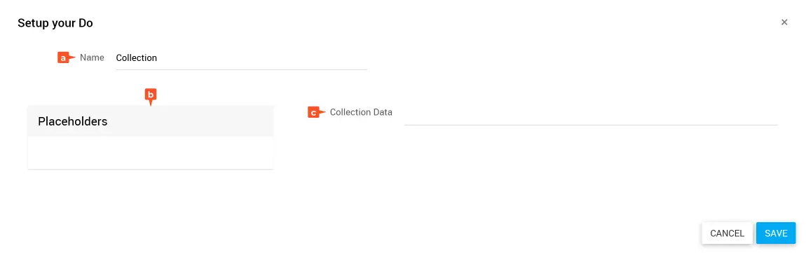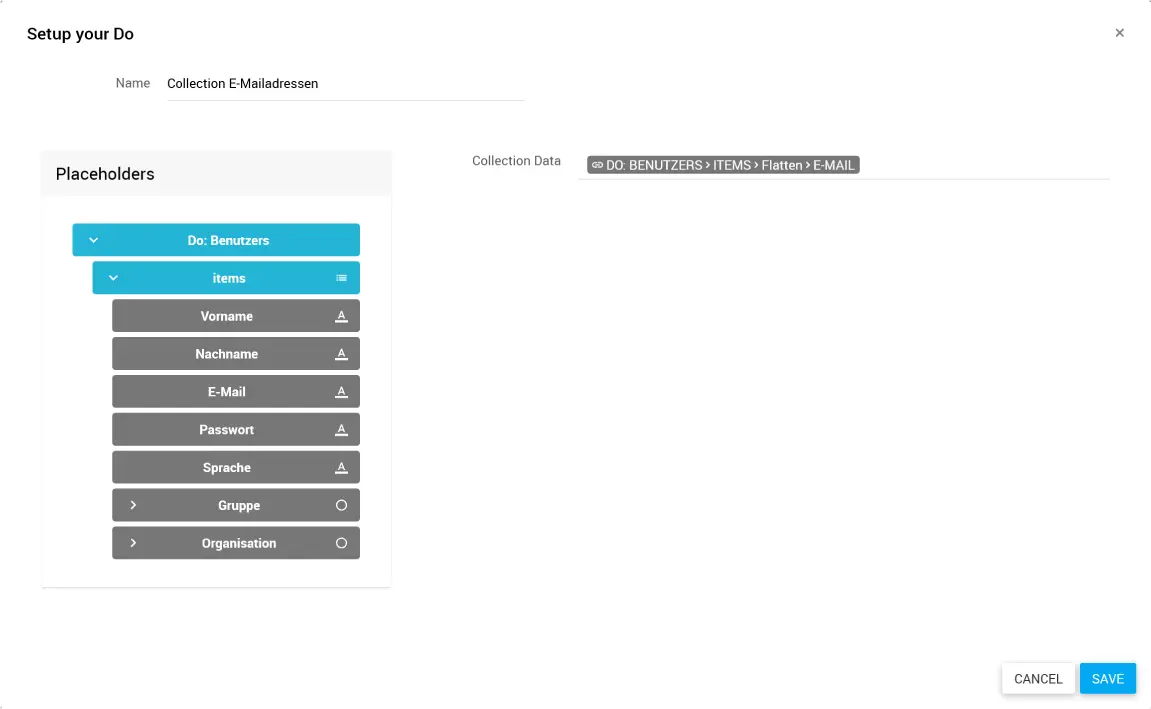 Ziehe die Daten, aus denen eine Collection erstellt werden soll, aus den Placeholders in das Feld Collection Data.