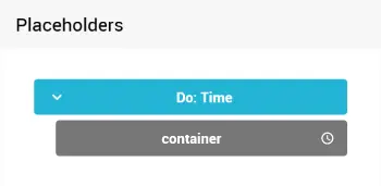 Wird der Baustein im Workflow verwendet, erhält der Baustein standardmäßig einen generisch beschreibenden Namen: Time wird zu Time Container.
