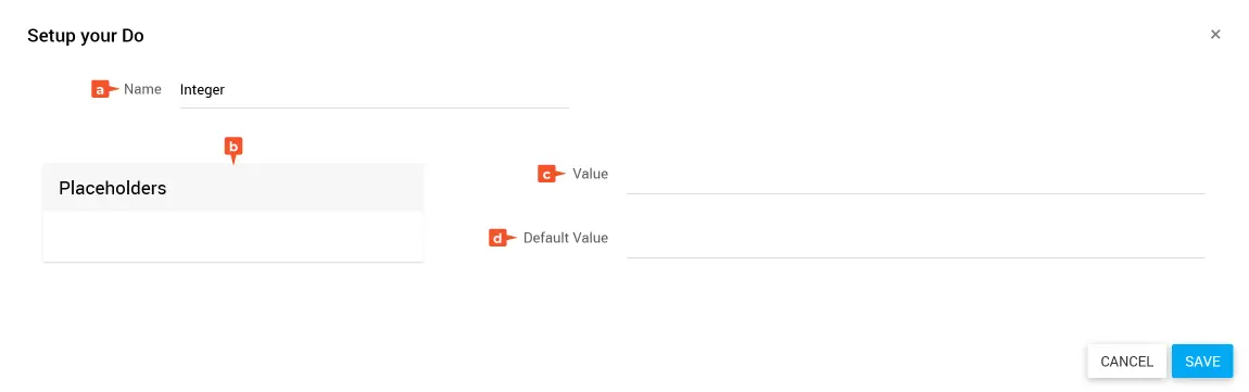 Ziehe einen Platzhalter vom Datentyp Integer aus den Placeholders in das Feld Value.