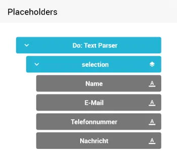 Im weiteren Verlauf des Workflows stehen dir die Platzhalter, die du im Schema definiert hast, zur Verfügung.
