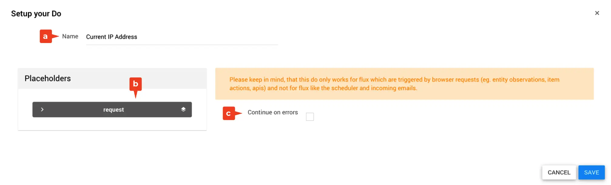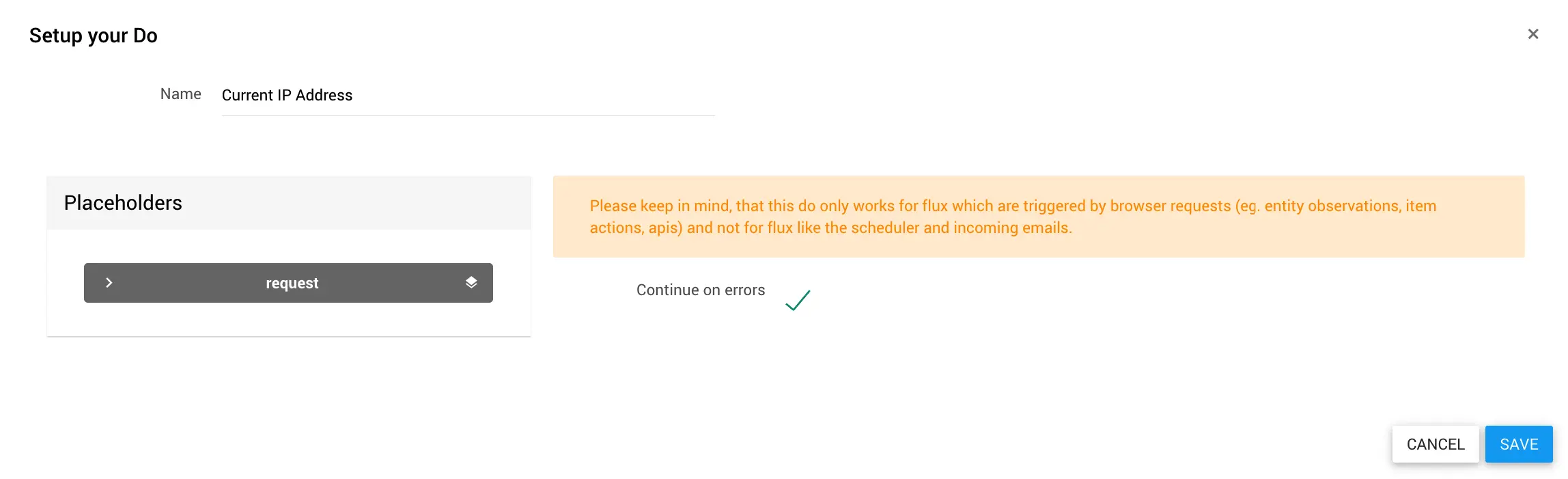 - Continue on errors: Wenn aktiviert, läuft der Workflow auch dann weiter, wenn die aktuelle IP Adresse nicht gefunden wurde.
