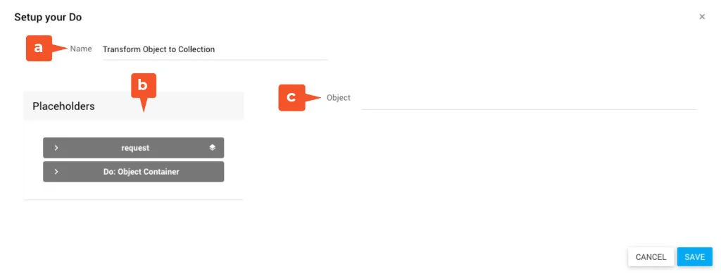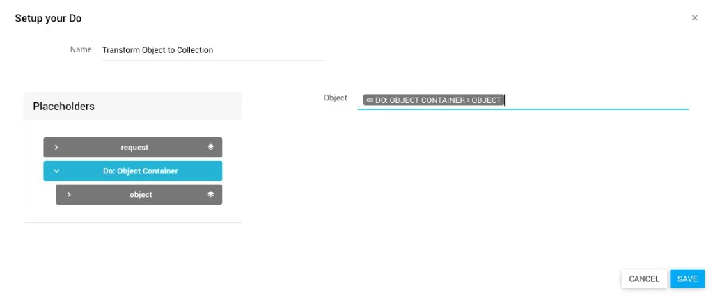 - Object: Das Objekt, das in eine Collection umgewandelt werden soll. Hier ziehst du einen Platzhalter ein (z. B. ein Object-Container aus einem vorherigen Do).