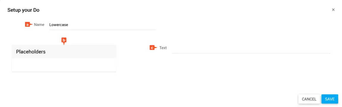 Ziehe einen String aus den Placeholders in das Feld Text.