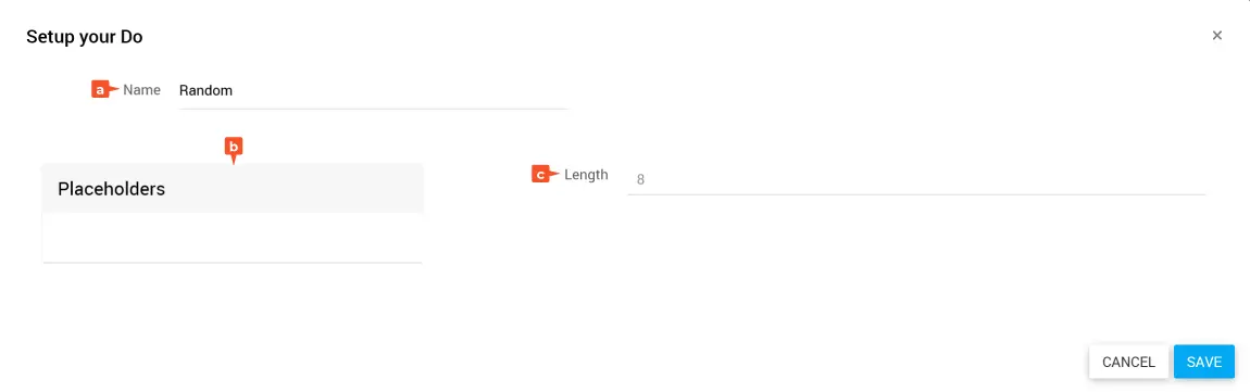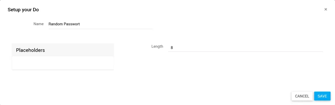 Wird der Baustein im Workflow verwendet, erhält der Baustein standardmäßig einen generisch beschreibenden Namen: Random wird zu Random String.