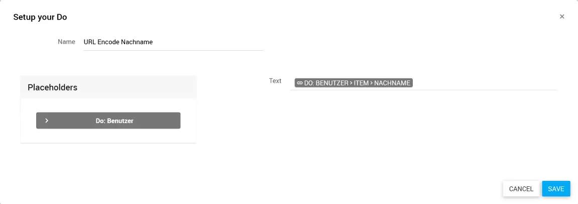 Gib im Feld Name eine treffende Bezeichnung ein. Zum Beispiel: „URL Encode Nachname“