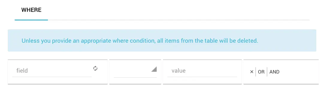 Wenn du keine Where-Bedingung angibst, werden alle Datensätze gelöscht.