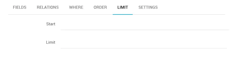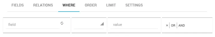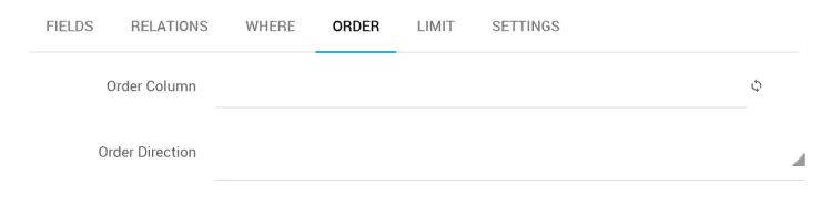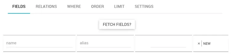 Definiere die Abfrage der Daten unter FIELDS, RELATIONS, WHERE, ORDER, LIMIT und SETTINGS.