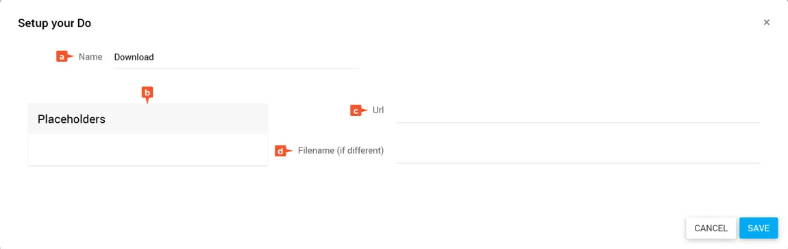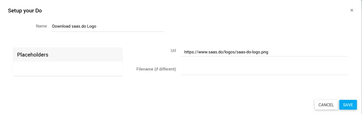 Gib optional im Feld Filename einen neuen Dateinamen ein oder ziehe einen Platzhalter aus den Placeholders hinein.
