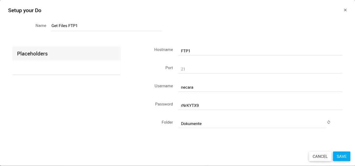 Den Baustein findest du unter: Workflow-Baukasten → DO → Services → Files → FTP