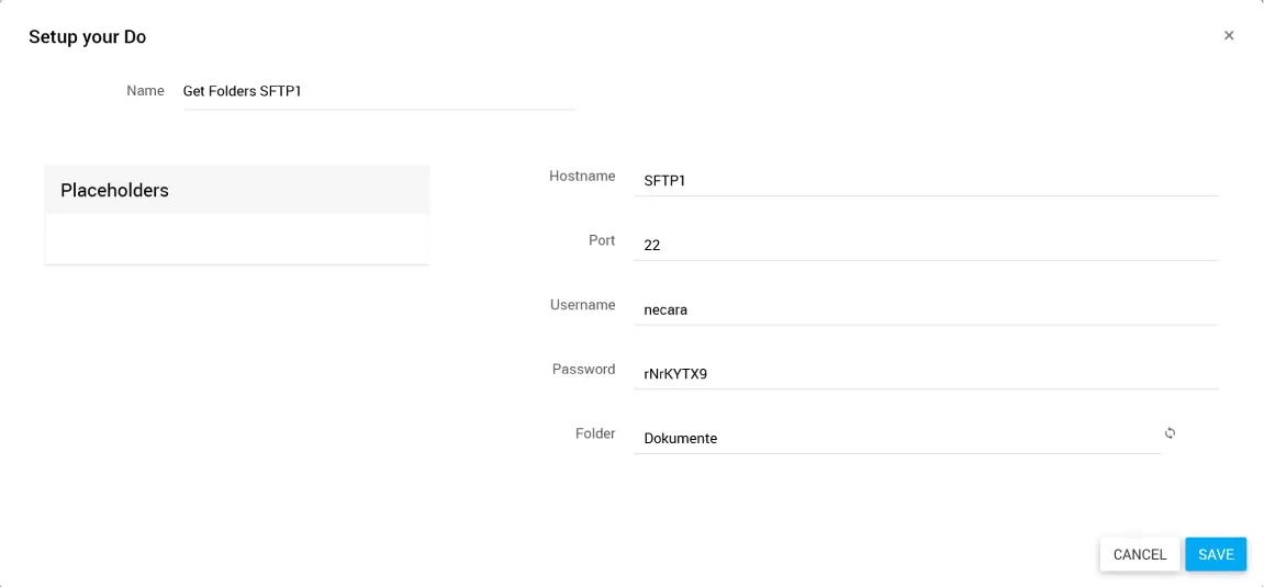 Mit dem Baustein Get Folders kannst du eine Ordnerstruktur von einem SFTP-Server abfragen.