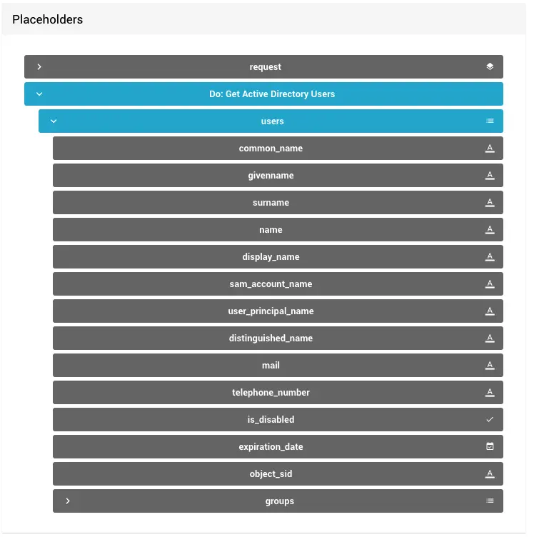 Wird der Baustein im Workflow verwendet, erhält der Baustein standardmäßig einen generisch beschreibenden Namen: Get Users wird zu Get Active Directory Users.