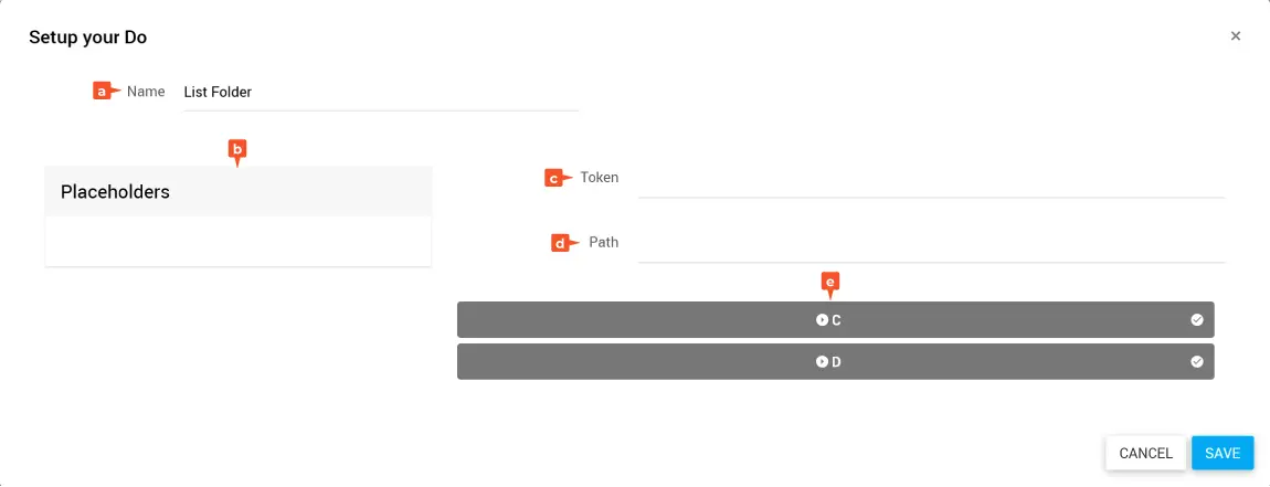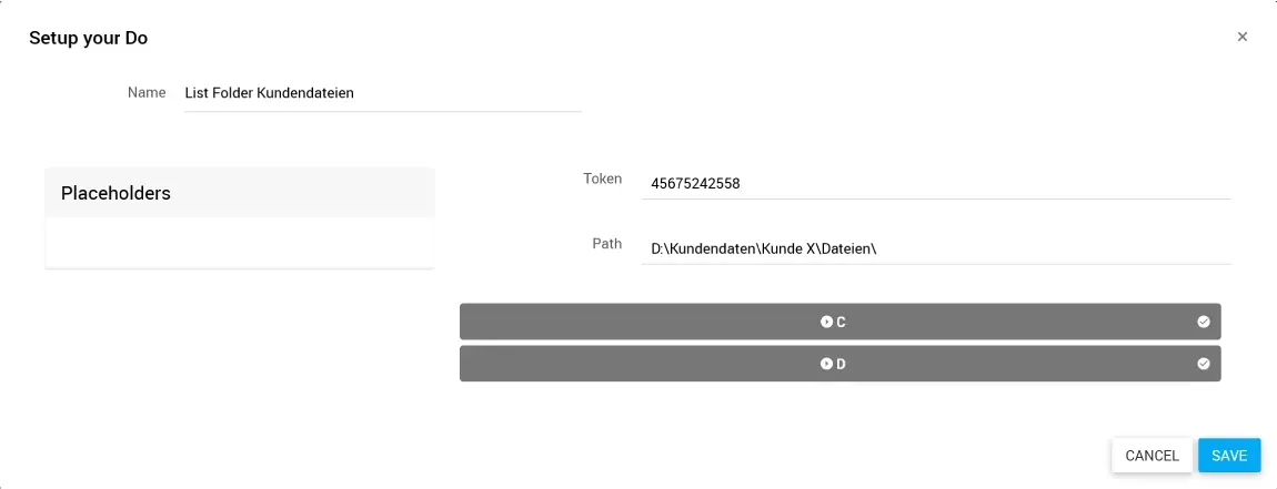 Gib im Feld Path den Dateipfad ein oder ziehe einen Platzhalter aus den Placeholders hinein.