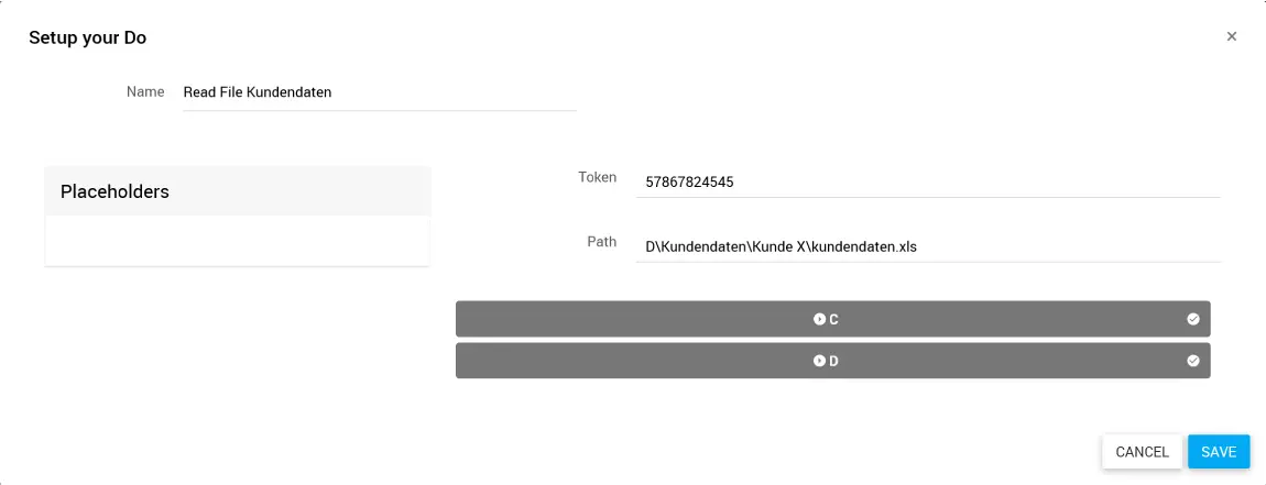 Gib im Feld Path den Dateipfad ein oder ziehe einen Platzhalter aus den Placeholders hinein.