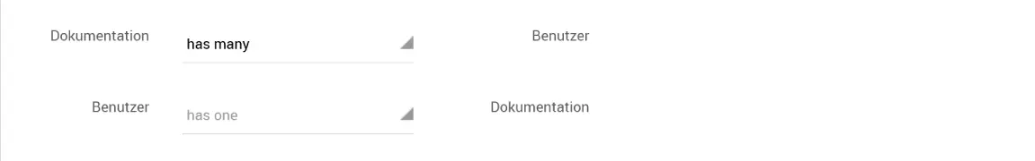 - Definition der umgekehrten Beziehung. Wird automatisch gesetzt. (hier: Benutzer has many Dokumentation)