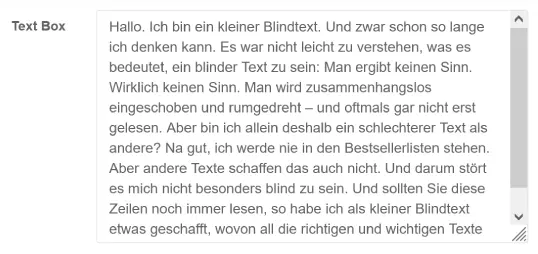 Das Datenfeld Text Box ist ein mehrzeiliges Textfeld mit maximal 65535 Zeichen.