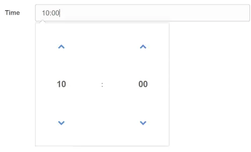 Das Datenfeld Time ist ein Zeitauswahlfeld. Bei einem Klick auf das Feld, wird eine Uhrzeit angezeigt, die der Benutzer einstellen kann.