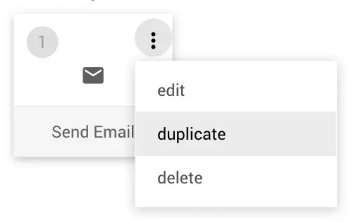 Bausteine können dupliziert werden. Über die 3 Punkte in der oberen rechten Bausteinecke kann über die Auswahl duplicate