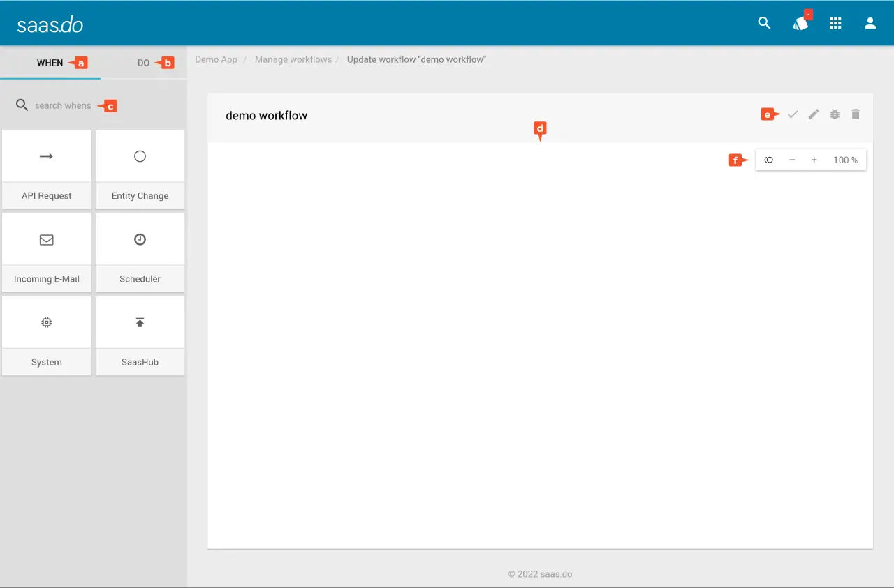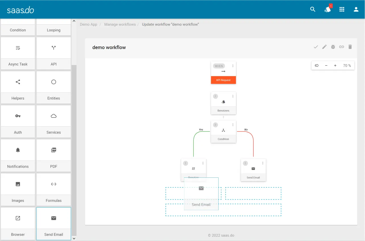 Im Workflow-Baukasten erstellt du Prozessautomationen nach dem Wenn-Dann-Prinzip, um die Entitäten in saas.do sowie externen Datenbanken, oder Webanwendungen miteinander arbeiten zu lassen. Ebenso kannst du über die Workflow-Ansicht deine Geschäftslogiken abbilden.
